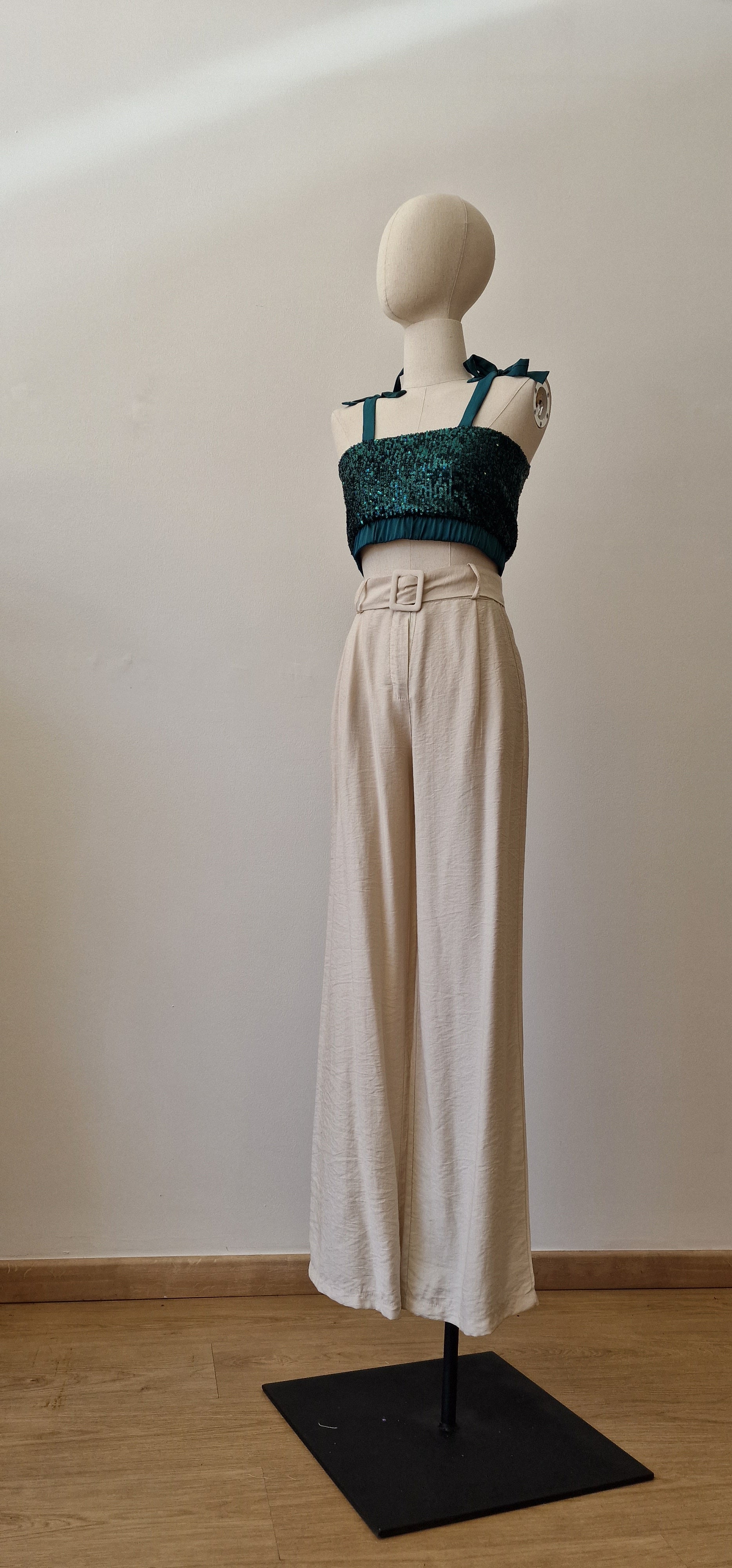 Top lantejoulas verde
