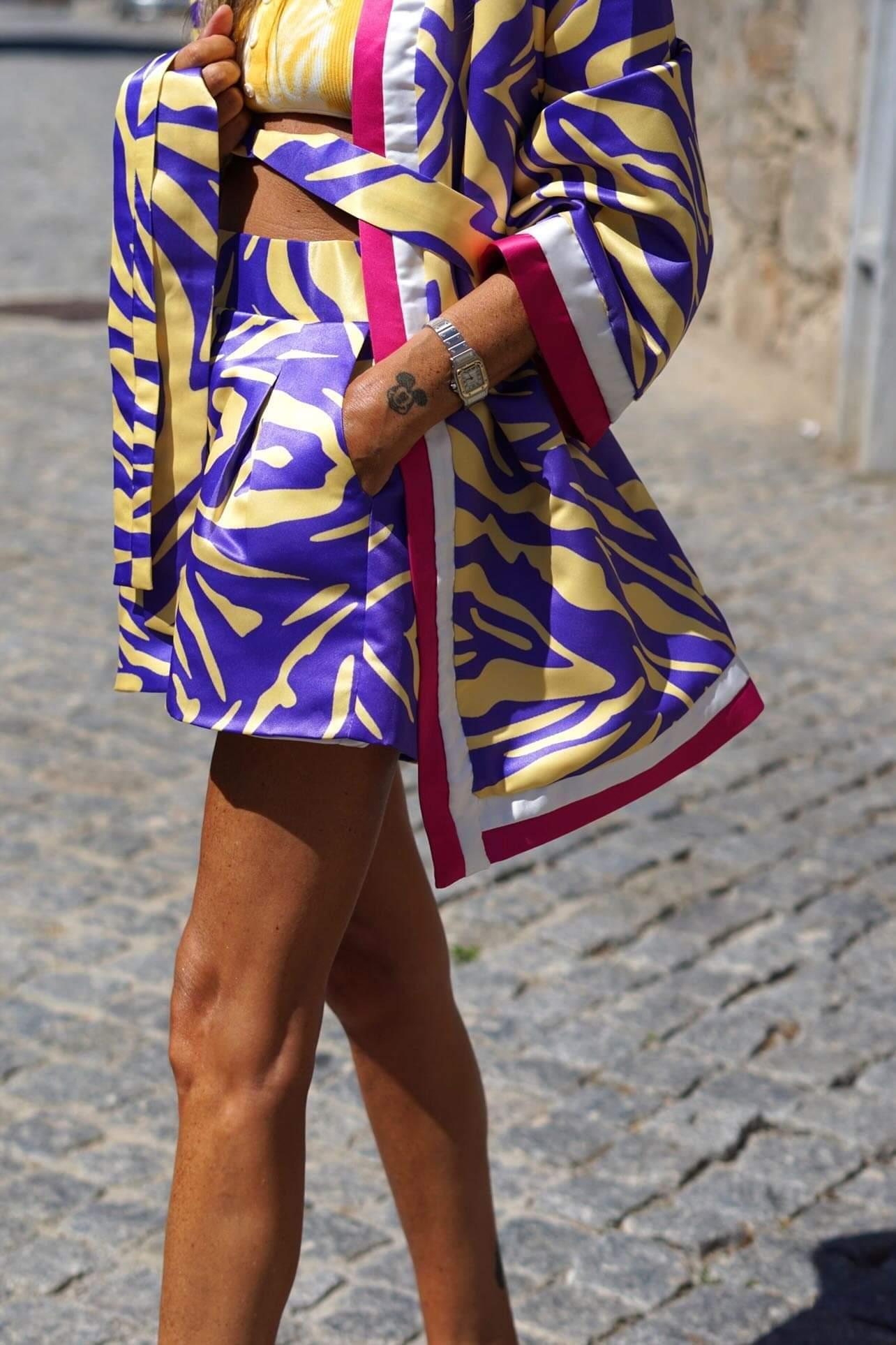 Tamanhos disponíveis: SM E ML. A modelo mede 169 cm e está a usar o tamanho SM.